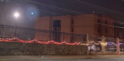 Daughter puts Christmas lights on wall outside Northwood seniors home